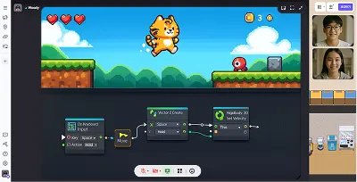코딩 문법 대신, 블록 연결로 게임의 동작 구조를 이해합니다.