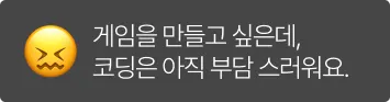 코딩부터 시작하지 않아도, 게임 개발의 흐름을 경험할 수 있습니다