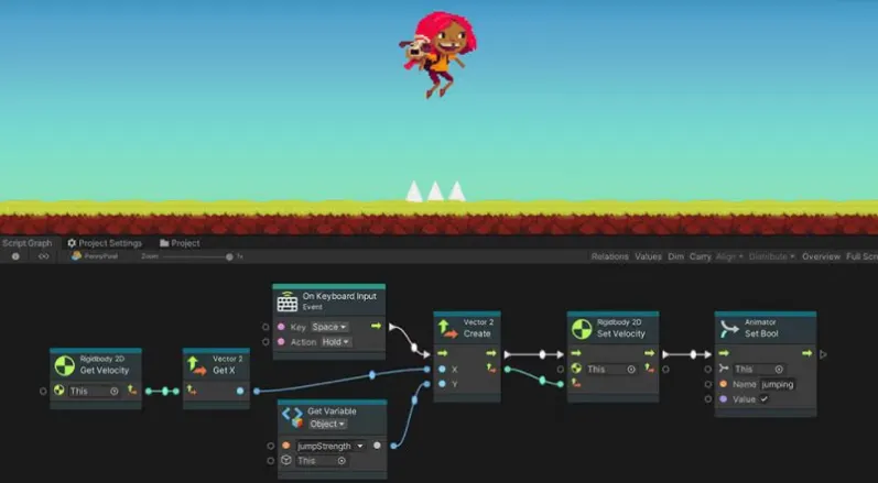 블록과 블록을 연결해 게임을 만드는 Unity의 개발 도구를 활용합니다.